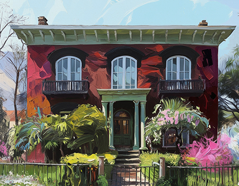 Inspired by the stunning architecture and the parks from a short visit to the charming city of Savannah where the artist spent the day soaking on the beauty of historic streets.