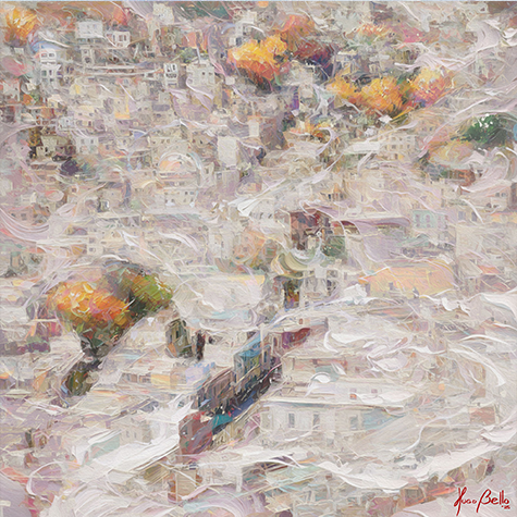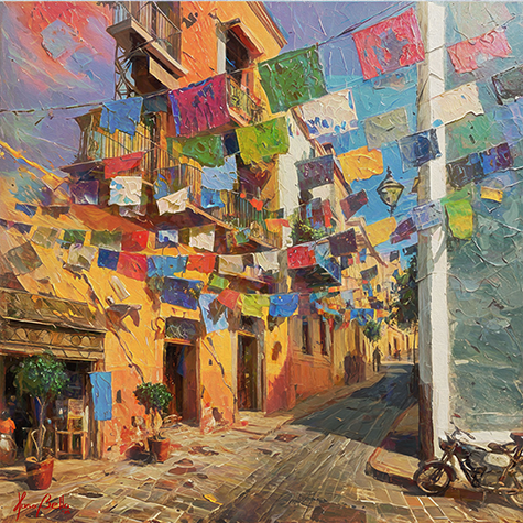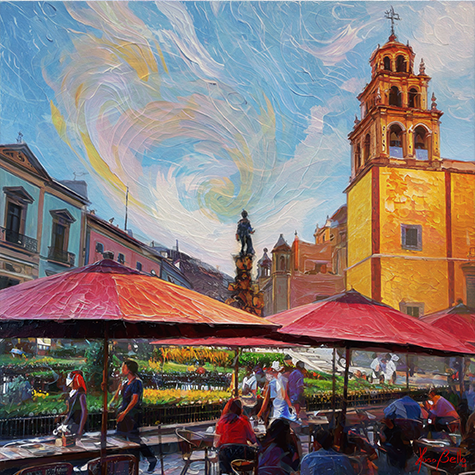 While these paintings carry the expressive signature of the series, where the artist moves beyond literal representation to evoke emotion and fleeting moments, the character of Guanajuato demanded a new conversation. Here, that style is shaped by a distinct quality of light, a vertical rhythm born from its steep canyon streets, and an atmosphere buzzing with a beautiful, chaotic energy. The result is a collection that, while part of a larger journey, possesses a soul entirely its own.
