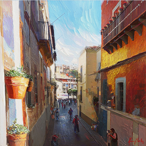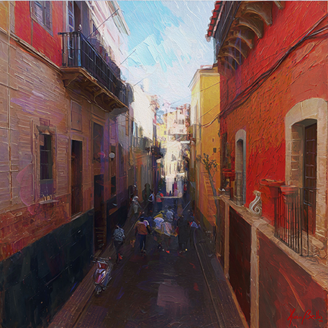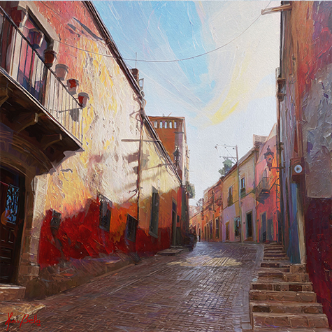 Hugo Bello's artistic tour of Mexico continues with the captivating city of Guanajuato. In its unique geography and lively atmosphere, he discovered a new and powerful inspiration.