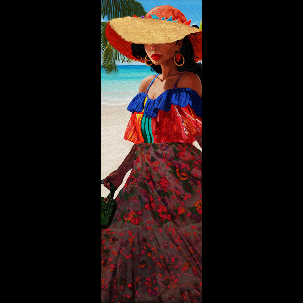 1- BUY 1 OF 5 FULL VERTICAL MONO-PPRINT ON CANVAS 20" x 60" WITH ACRYLIC EMBELLISHMENTS
