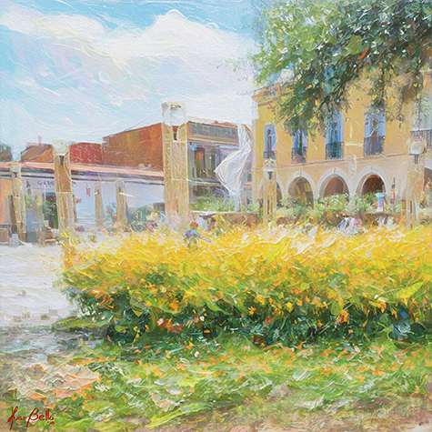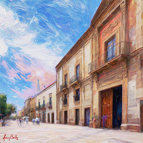 These paintings continue the series’ expressive style, where the artist moves beyond literal representation to evoke emotion and fleeting moments. Yet, with the distinct light, rhythm, and atmosphere of Querétaro, a new essence emerges, subtle, but unmistakably its own.